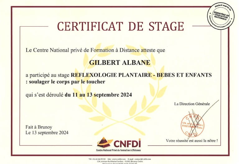 Ma formation en naturopathie s'est déroulée au CNFDI (Centre National Privé de Formation à Distance), un établissement déclaré auprès du ministère de l’Éducation nationale, certifié Qualiopi et agréé par le Syndicat des Professionnels de la Naturopathie (SPN).